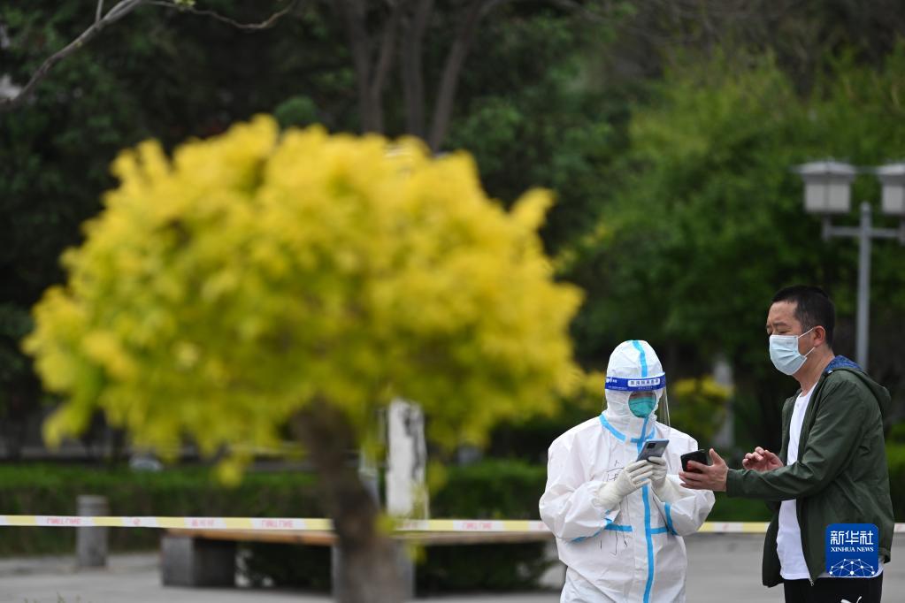 5月10日,在青海省西寧市城西區(qū)虎臺遺址公園核酸采樣點,工作人員對參加核酸采樣的市民進行掃碼登記。
