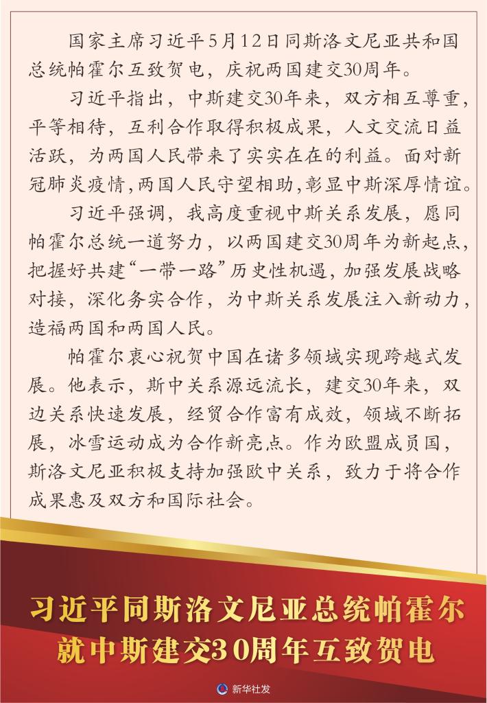 習近平同斯洛文尼亞總統(tǒng)帕霍爾就中斯建交30周年互致賀電