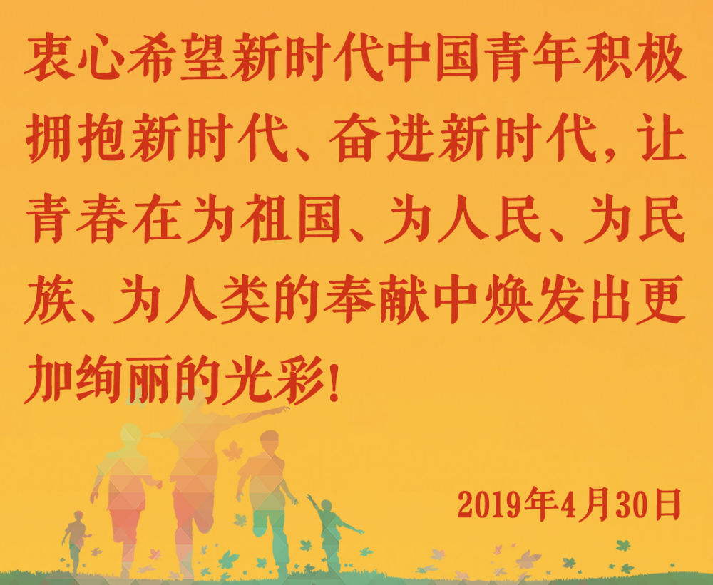 ↑2019年4月30日,紀念五四運動100周年大會在北京人民大會堂隆重舉行。中共中央總書記、國家主席、中央軍委主席習近平在大會上發表重要講話。