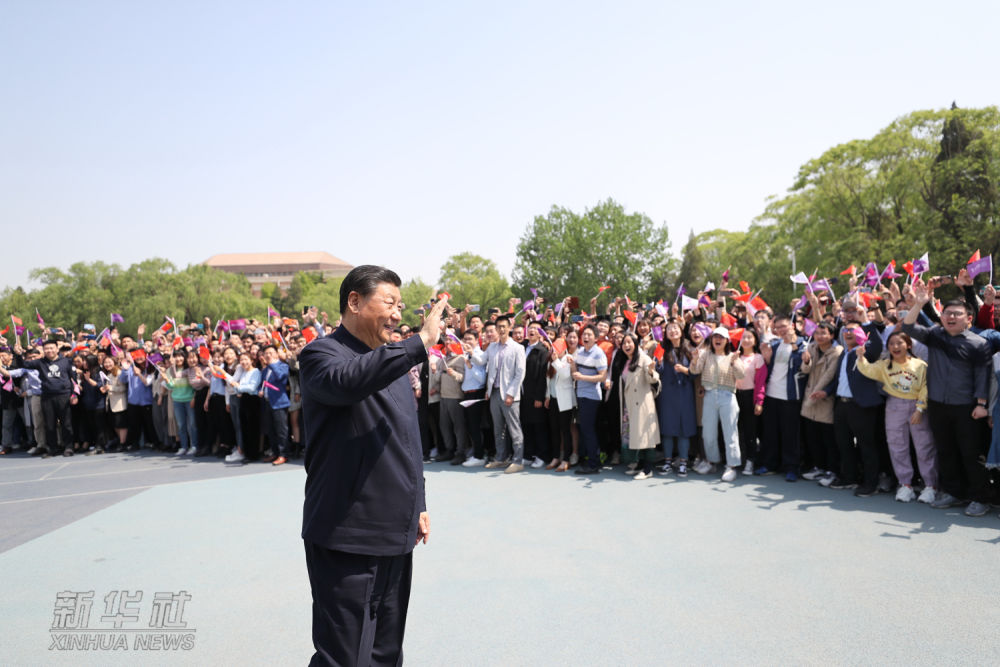 ↑2022年4月25日上午,習近平來到中國人民大學考察調研。這是習近平向師生們揮手致意。