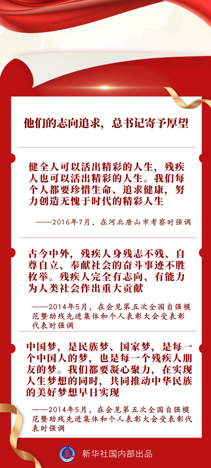 我國有8500萬殘疾人,是特殊困難的群體。黨的十八大以來,習近平總書記對殘疾人“格外關心、格外關注”,圍繞保障殘疾人基本民生、改善殘疾人生活品質、促進殘疾人全面發展等方面多次發表重要講話、作出重要指示。5月15日,在第三十二次全國助殘日到來之際,讓我們一同感悟總書記心中這份“格外”的愛。
