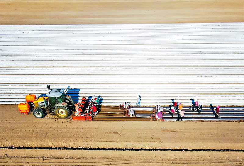 耕地是糧食生產的命根子。近年來,各地持續推進農田水利設施和高標準農田建設,加快良種、先進農機裝備攻關和推廣應用,不斷提高農業綜合生產能力,促進農民致富增收。圖為2022年4月29日,工作人員在國家現代農業示范區——河北省張家口市塞北管理區農業基地播種胡蘿卜。 新華社發 武殿森/攝