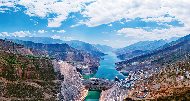 金沙江白鶴灘水電站是實施“西電東送”的國家重大工程,是當今世界在建規模最大、技術難度最高的水電工程。自2021年6月28日首批機組投產發電以來,白鶴灘水電站累計發電量已達256億千瓦時,相當于減排二氧化碳2000多萬噸。圖為2022年4月22日拍攝的白鶴灘水電站一景。 新華社發 胡超/攝