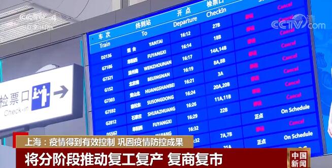 昨天(5月16日),上海虹橋站增開多趟旅客列車,全天出發(fā)共12趟,離滬旅客總數(shù)超過6000人,目的地增加了昆明、南昌、廈門等城市。上海市計劃5月22日起,地面公交和軌道交通有條件逐步恢復(fù)運營。