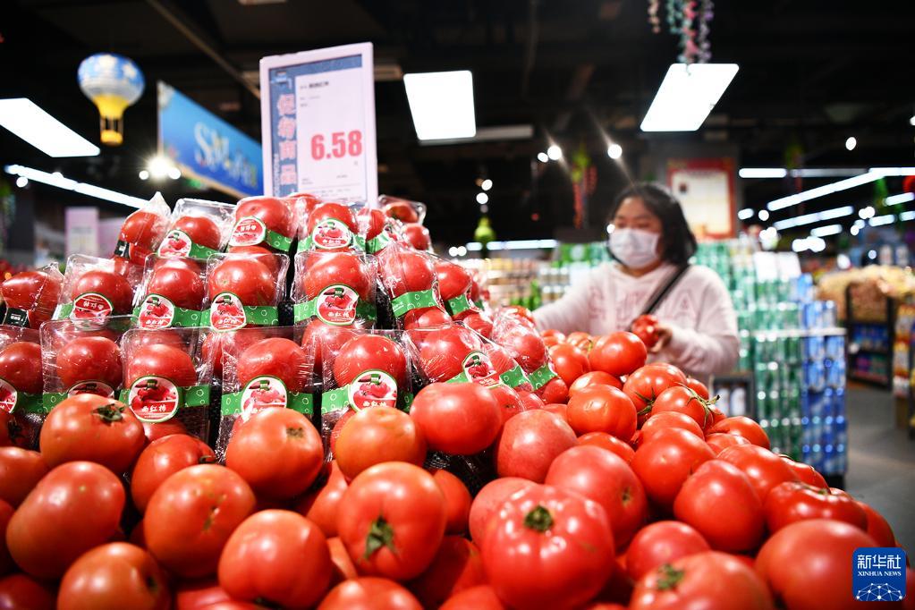 5月16日,消費者在貴州省遵義市余慶縣一家超市選購蔬菜。新華社發(王永娟攝)