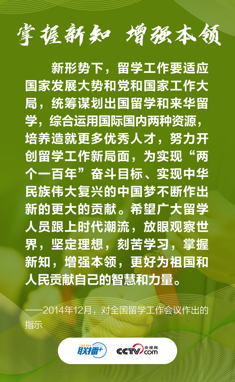 央視網《聯播+》特梳理總書記對廣大留學人員的諄諄寄語,與您一起學習。