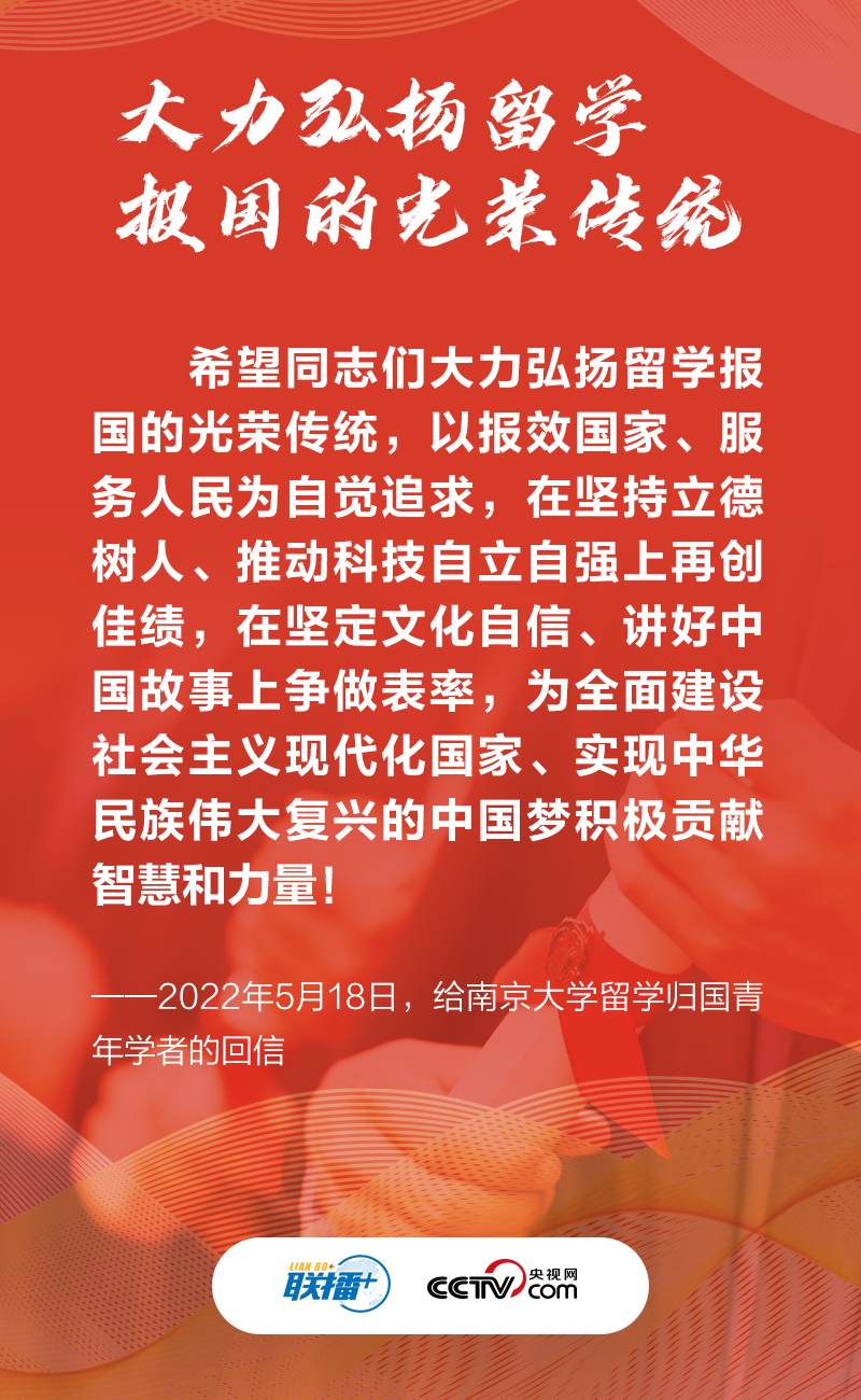 聯播+“得知你們以李四光、程開甲等老一輩科學家為榜樣,在海外學成后回國投身科教事業,在各自崗位上努力報效祖國、服務人民,取得豐碩成果,我感到很欣慰。”5月18日,習近平總書記給南京大學的留學歸國青年學者回信,言辭間對他們寄予殷切期望。