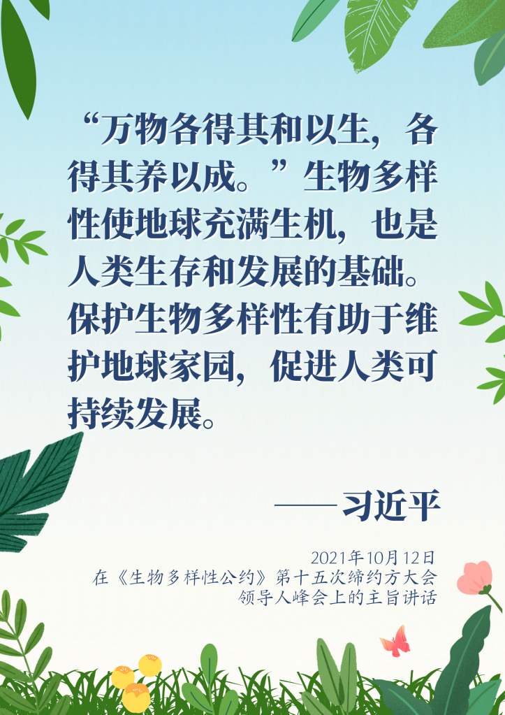 5月22日是國際生物多樣性日,今年主題是“共建地球生命共同體”。近年來,習近平主席就加強生物多樣性保護、共建清潔美麗世界作出一系列論述,闡釋人與自然和諧共生的重要理念。