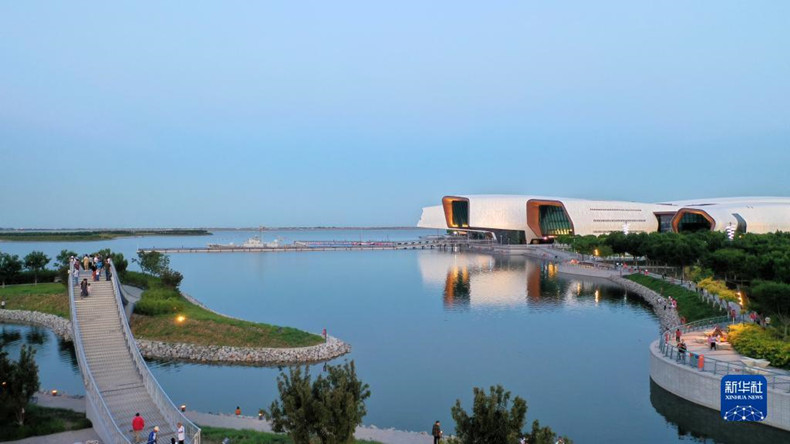 中新天津生態城南灣公園一景(2021年6月5日攝,無人機照片)。新華社記者 李然 攝