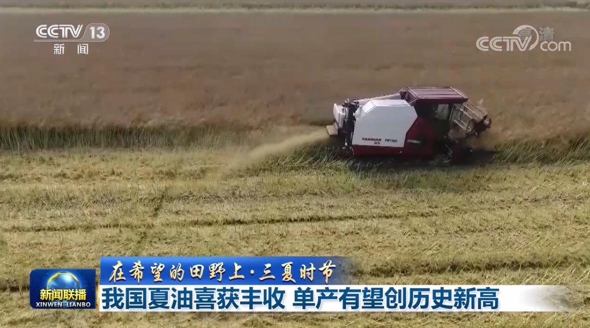 央視網消息(新聞聯播):按照中央有關擴種大豆和油料的部署,今年國家實施大豆和油料產能提升工程。眼下,我國夏收油料作物喜獲豐收,單產有望創歷史新高。