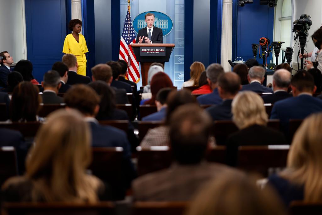 5月18日,美國總統國家安全事務助理沙利文在華盛頓白宮例行記者會上回答提問。新華社發(沈霆攝)