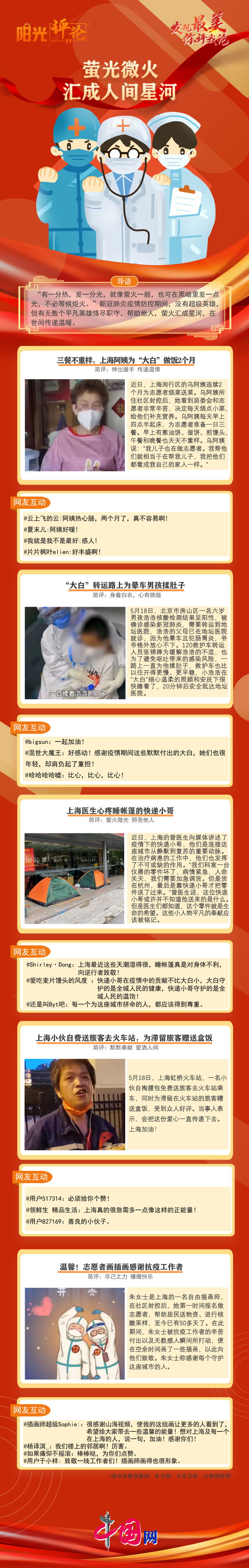 導語:“有一分熱,發一分光,就像螢火一般,也可在黑暗里發一點光,不必等候炬火。”新冠肺炎疫情防控期間,沒有超級英雄,但有無數個平凡英雄恪盡職守,幫助他人,螢火匯成星河,在世間傳遞溫暖。