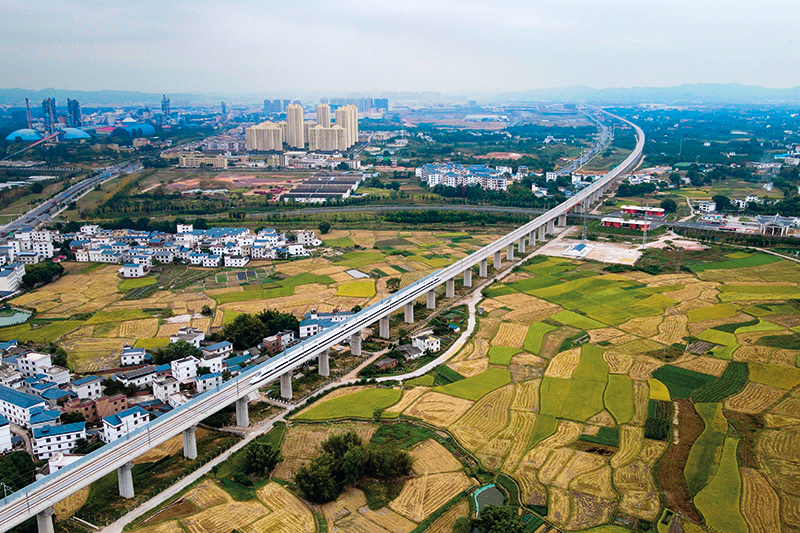 連通贛南革命老區與深圳經濟特區的贛深高鐵聯調聯試列車經過信豐特大橋(2021年10月14日攝) 張海根攝/本刊