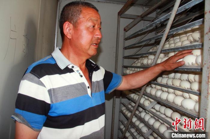 中新網(wǎng)烏魯木齊6月7日電 (史玉江 謝國(guó)慶 王菊芳)“雖然現(xiàn)在灰鵝因疫情在當(dāng)?shù)劁N售受到影響,但因?yàn)橹敖⒘穗娚糖溃Z蛋的銷售市場(chǎng)非常好。”日前,在新疆生產(chǎn)建設(shè)兵團(tuán)第十師一八二團(tuán)一養(yǎng)殖場(chǎng)內(nèi)的孵化室,52歲的強(qiáng)松江對(duì)記者表示。