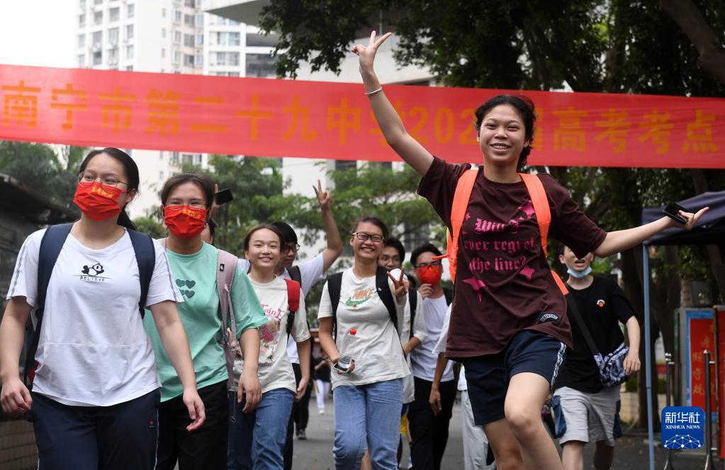 6月8日,在南寧市第二十九中學,考生結束考試后走出考點。