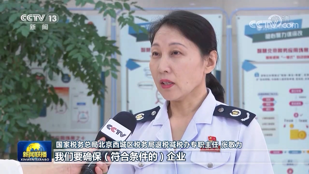 國家稅務(wù)總局北京西城區(qū)稅務(wù)局退稅減稅辦專職主任 張敬力:我們要確保(符合條件的)企業(yè)都能享受到政策紅利,一戶不落,力爭(zhēng)退稅資金及時(shí)到賬。