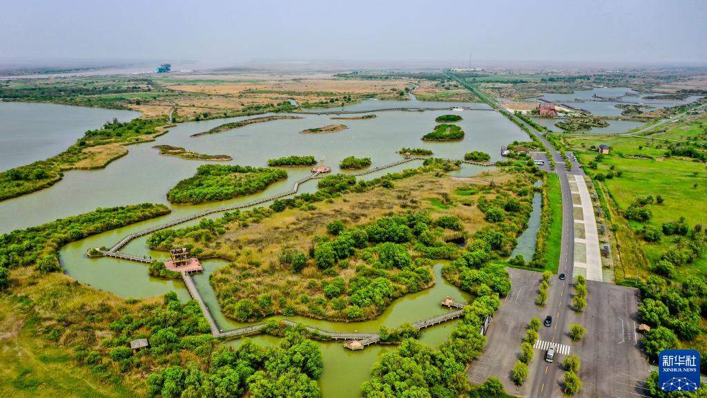 夏日的東營市黃河入?跐竦兀G草連天、百鳥翔集。