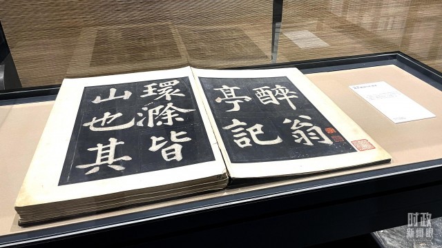 △這是三蘇祠的鎮(zhèn)館之寶之一,楷書《醉翁亭記》拓本。(總臺(tái)央廣記者潘毅拍攝)