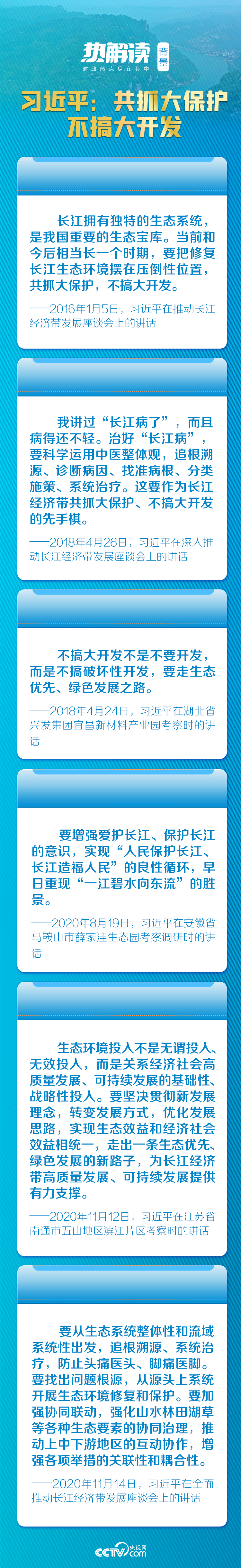 在這次會議上,總書記明確提出“共抓大保護,不搞大開發”,清晰勾畫了推動長江經濟帶“生態優先、綠色發展”的宏偉藍圖。