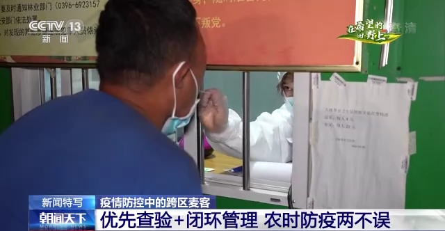根據(jù)河南疫情防控規(guī)定,機(jī)手持有健康碼綠碼、行程碼、48小時核酸檢測陰性證明和跨區(qū)作業(yè)證,像孔德寶和老田這樣因為核酸結(jié)果超過48小時場所碼被賦上黃碼的,服務(wù)站點的工作人員會采用“抗原加核酸”的檢測方式。15分鐘抗原檢測出結(jié)果為陰性后,可由用戶點對點閉環(huán)接到作業(yè)地點,并實行閉環(huán)方式進(jìn)行作業(yè)。經(jīng)過抗原檢測,孔德寶和老田都是陰性。