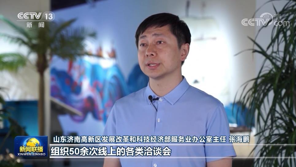 山東濟南高新區發展改革和科技經濟部服務業辦公室主任 張海鵬:我們累計組織300余家中小微外貿企業、組織50余次線上的各類洽談會,累計成交的外貿意向金額超過一億美元。