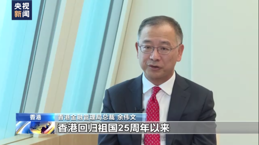 香港金融管理局總裁 余偉文:香港回歸祖國25周年以來,其實香港的金融市場規模就增加了非常非常多,我們非常獨特的優勢,就是我們背靠祖國,面向國際。我們從很久以來都是擔當一個國際跟內地市場的橋梁,所以我看這兩個部分,繼續保持我們香港金融系統的穩定,第二就是把握好國家開放給香港帶來的不同的商機,我覺得就是我們最應該做,最能做去貢獻于“一國兩制”有利的發展的一個地方。