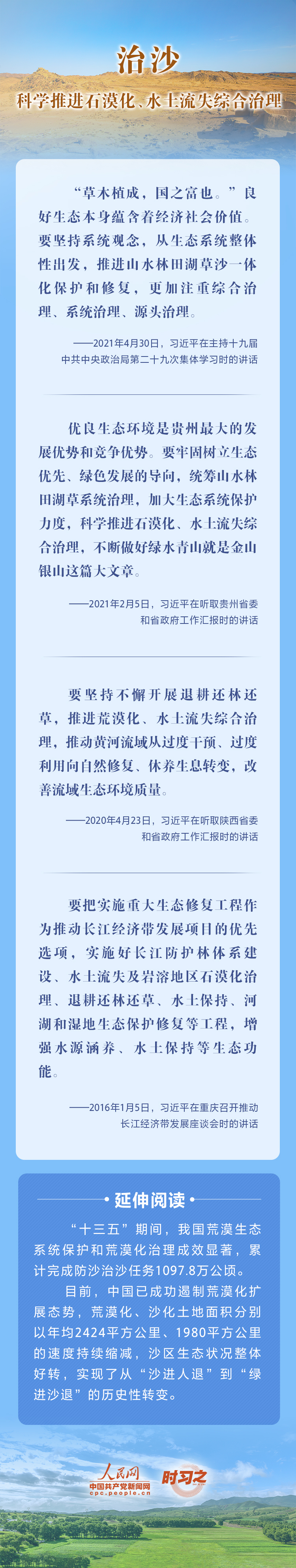 2022年6月17日是第二十八個世界防治荒漠化與干旱日。荒漠化是全球面臨的重大生態問題,黨的十八大以來,在習近平生態文明思想的指引下,我國荒漠化防治工作開辟了新境界、邁上了新臺階。讓我們一起從總書記的重要論述里學習領悟中國踐行綠色發展理念,堅定走好荒漠化防治之路的決心。