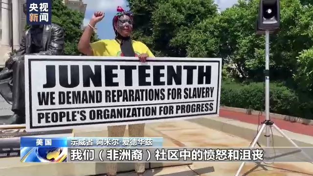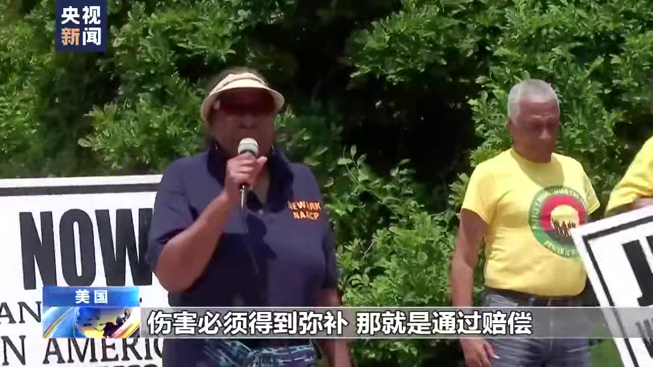 去年6月,美國正式將6月19日定為聯(lián)邦公共假期。每年這一天前后,全美多地都會(huì)舉行活動(dòng)呼吁種族平等。當(dāng)?shù)貢r(shí)間17日,在新澤西州紐瓦克舉行的示威活動(dòng)要求對(duì)被“奴隸制”傷害的非洲裔美國人作出賠償。
