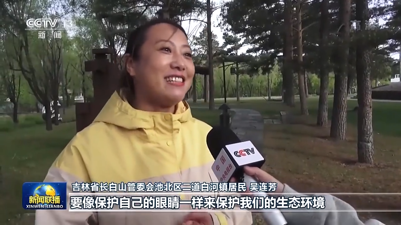 吉林省長白山管委會池北區(qū)二道白河鎮(zhèn)居民 吳連芳:要像保護(hù)自己的眼睛一樣來保護(hù)我們的生態(tài)環(huán)境,也希望世界各地的所有的游客,都能到我們長白山來旅游、來做客,來感受一下我們長白山天然大“氧吧”的這種氛圍,讓長白山成為所有人我心向往之的旅游勝地。