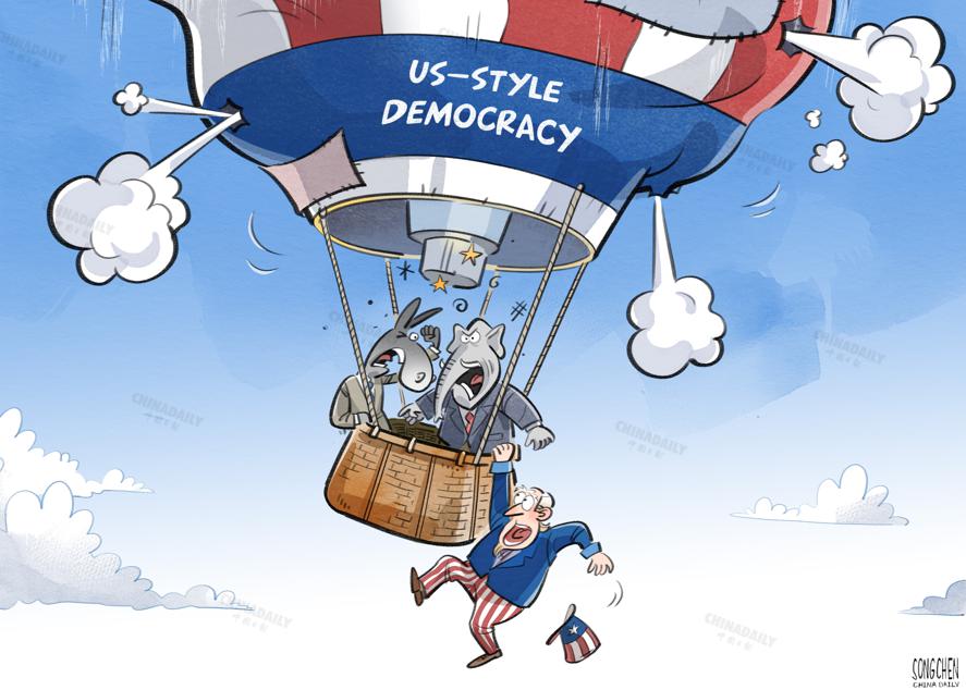 美國兩黨為私利奔忙,“美式民主機器”的內耗弊端更加凸顯。(來源:中國日報 宋晨 英文《中國日報》2022年6月21日8版)