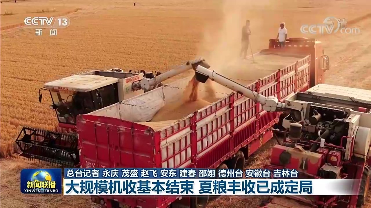 央視網(wǎng)消息(新聞聯(lián)播):眼下,夏糧主產(chǎn)區(qū)小麥大規(guī)模機(jī)收基本結(jié)束,夏糧小麥增產(chǎn)豐收已成定局、質(zhì)量好于常年。
