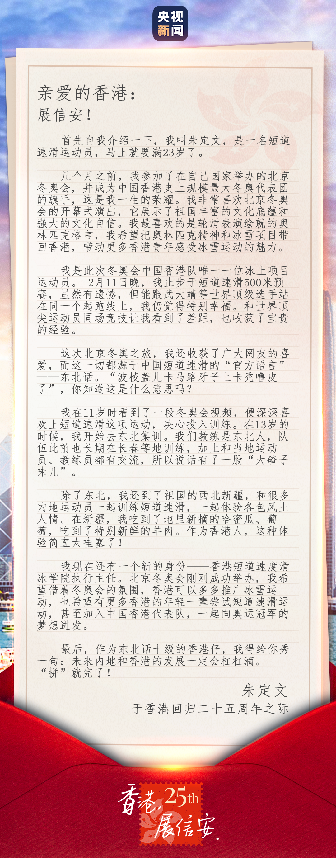 香港回歸祖國25周年之際,央視新聞推出《香港,展信安》系列報道。