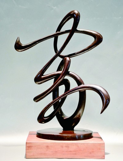 “翩若驚鴻,婉若游龍。”漢字書法藝術(shù)精妙絕倫、底蘊(yùn)深厚,是中國文化的代表符號。我多年來一直在探索將平面的書法藝術(shù)進(jìn)行立體化視覺表達(dá)。2011年,我為香港中文大學(xué)用不銹鋼塑造了一個立體的草書“家”字。在香港“歸家”的紀(jì)念日,沒有什么比“家”字更能表達(dá)香港同胞愛國愛港愛家的家國情懷。因此,我決定再次創(chuàng)作“家”字,將過去3米高的雕塑作品縮小,改變一些結(jié)構(gòu),用銅制作成這件適合室內(nèi)展覽的作品《家》。