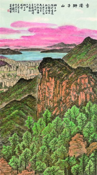 得知能為香港回歸25周年而創(chuàng)作,盡管工作繁忙,我欣然參與。這次美術(shù)展中,創(chuàng)作人物題材的比較多,而我是畫山水的,應(yīng)該選擇什么樣的風(fēng)景來表現(xiàn)香港呢?香港有一座獅子山,它見證著香港由一個小漁村發(fā)展為國際化大都市的艱辛歷程;而獅子山所代表的艱苦打拼、自強(qiáng)不息的香港精神,鼓舞著幾代香港人頑強(qiáng)奮斗。于是,我決定為象征香港精神的獅子山作畫。