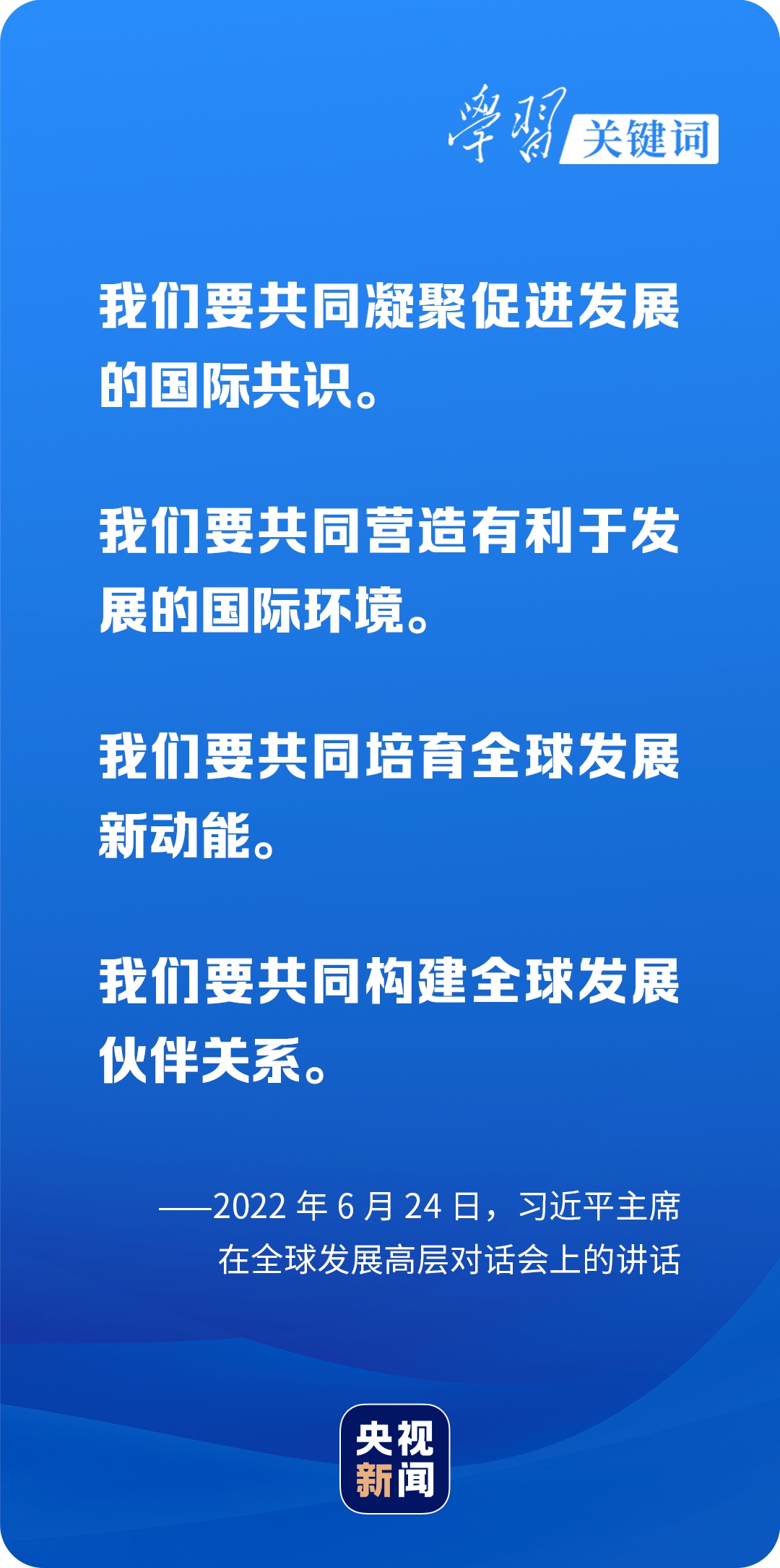 “這是一個充滿挑戰的時代,也是一個充滿希望的時代。我們要認清世界發展大勢,堅定信心,起而行之,擰成一股繩,鉚足一股勁,推動全球發展,共創普惠平衡、協調包容、合作共贏、共同繁榮的發展格局。”在全球發展高層對話會上,習近平主席這一宣示擲地有聲。