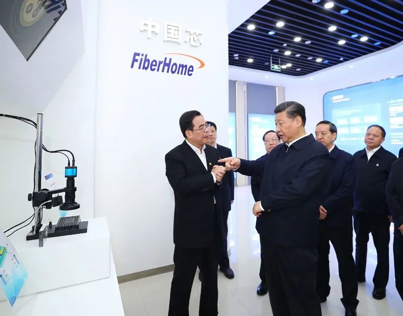 這一次,習近平總書記來到烽火科技集團考察,一邊查看企業(yè)研制的芯片、光纖等高科技產品,一邊了解產品用途、性能、國產化率、在國際同行業(yè)中的地位等情況。