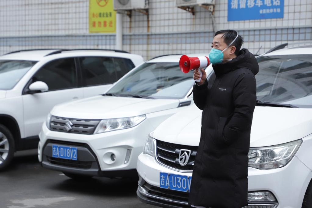 這是3月12日,吉林省人民醫院黨委書記苑志新指揮患者轉運。(受訪者供圖)