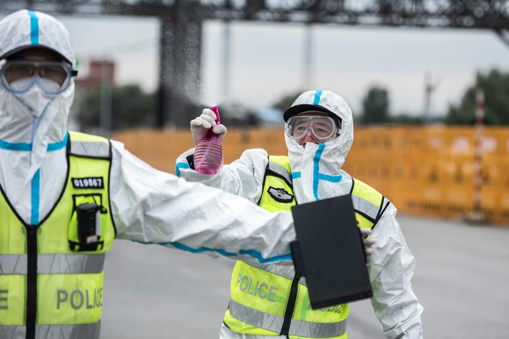 這是黑龍江省哈爾濱市公安局香坊分局瓦盆窯公安檢查站中隊長魏玉剛(右一)在高速路卡口執勤。(受訪者供圖)