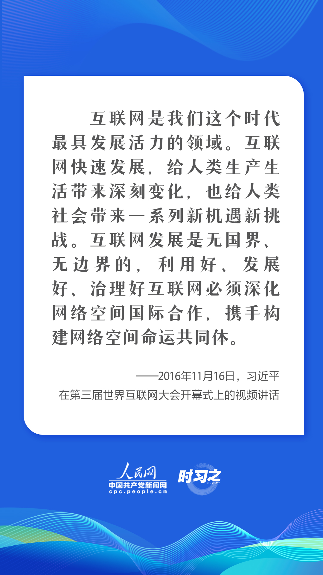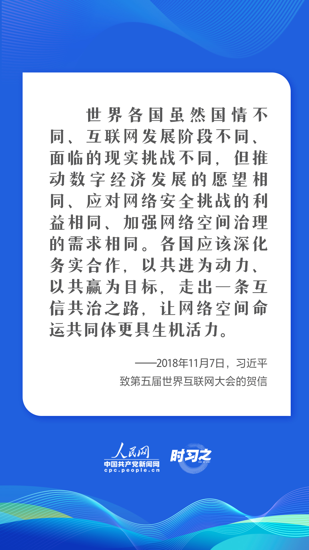 7月12日,國家主席習近平向世界互聯網大會國際組織成立致賀信。他強調,網絡空間關乎人類命運,網絡空間未來應由世界各國共同開創。這些年,習近平數次就互聯網發展大勢、網絡空間治理作出重要論述,并多次在不同場合發出“中國倡議”,為世界互聯網發展凝聚合力。