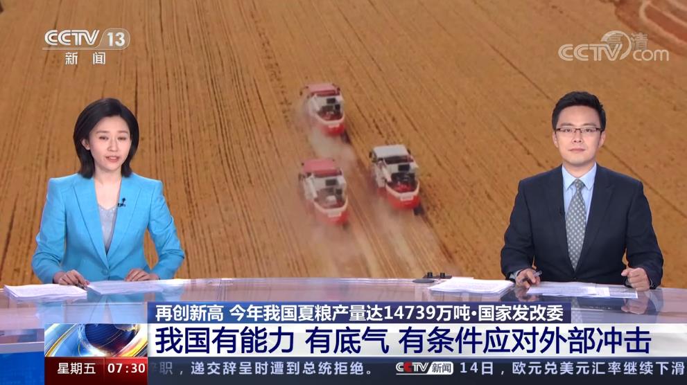 央視網消息:在國家發展改革委7月14日召開的經濟吹風會上,國家發展改革委經貿司有關負責人表示,當前我國糧食安全形勢較好,有能力、有底氣、有條件應對外部沖擊,端穩端牢“中國飯碗”。