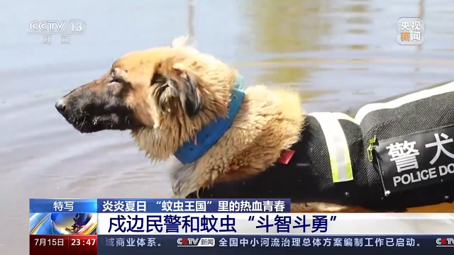 每次出發巡邏之前,民警們都要全副武裝,用保鮮膜裹住腳踝,防止蚊子從褲腿飛入。而防蚊紗帽、防蚊手套、防蚊藥,這些都是巡邏必備的物品。裝備佩戴齊全后,就要開始一天的巡邏任務,可快進入到叢林的時候,一直跟隨他們警犬說什么都不肯繼續前進。