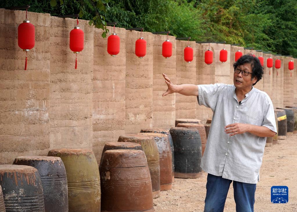郭愛(ài)和在“洛陽(yáng)三彩陶藝村”向參觀者介紹一處景觀(7月12日攝)。新華社記者 李安 攝