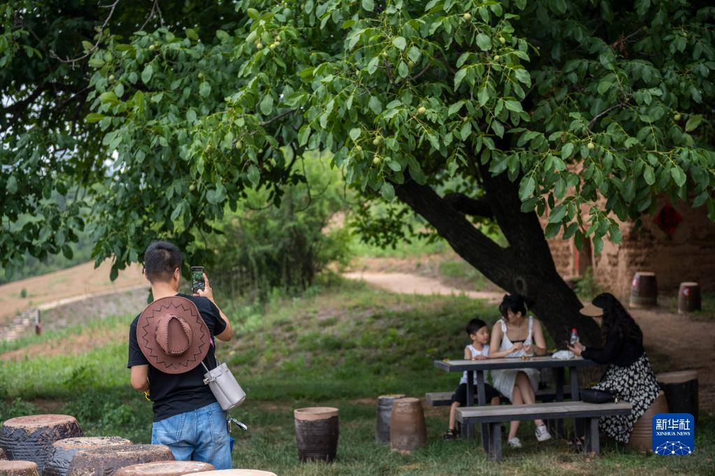7月12日,游客在“洛陽(yáng)三彩陶藝村”游覽拍照。新華社記者 徐嘉懿 攝