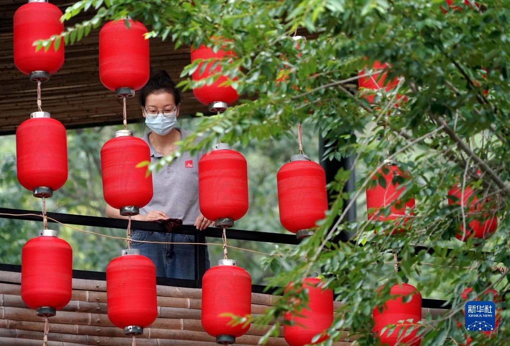 工作人員在“洛陽(yáng)三彩陶藝村”打掃衛(wèi)生(7月13日攝)。新華社記者 李安 攝
