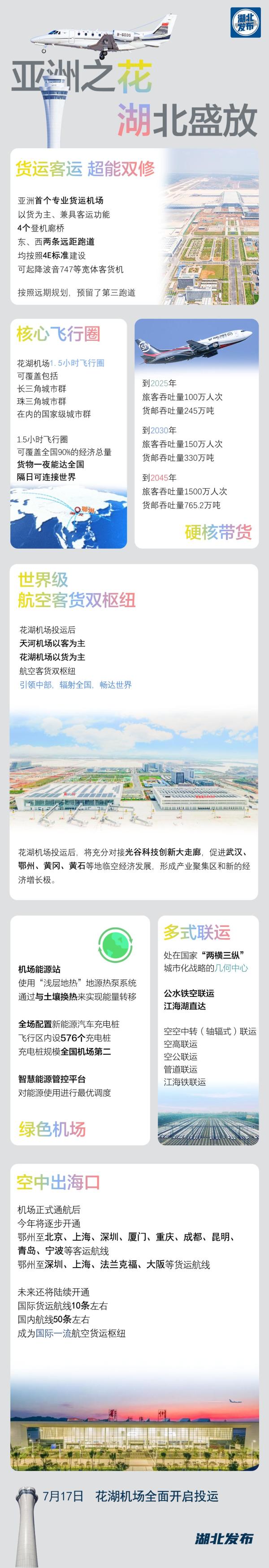 在湖北建設全國構建新發展格局先行區過程中,花湖機場必將為湖北打造全國重要物流樞紐、內陸開放高地作出重要貢獻。