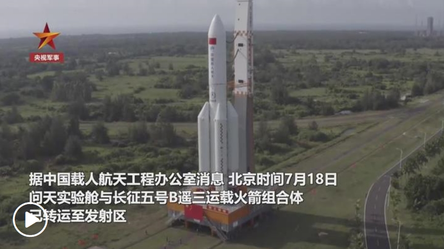 據中國載人航天工程辦公室消息,北京時間2022年7月18日,問天實驗艙與長征五號B遙三運載火箭組合體已轉運至發射區。后續將按計劃開展發射前的各項功能檢查和聯合測試等工作。