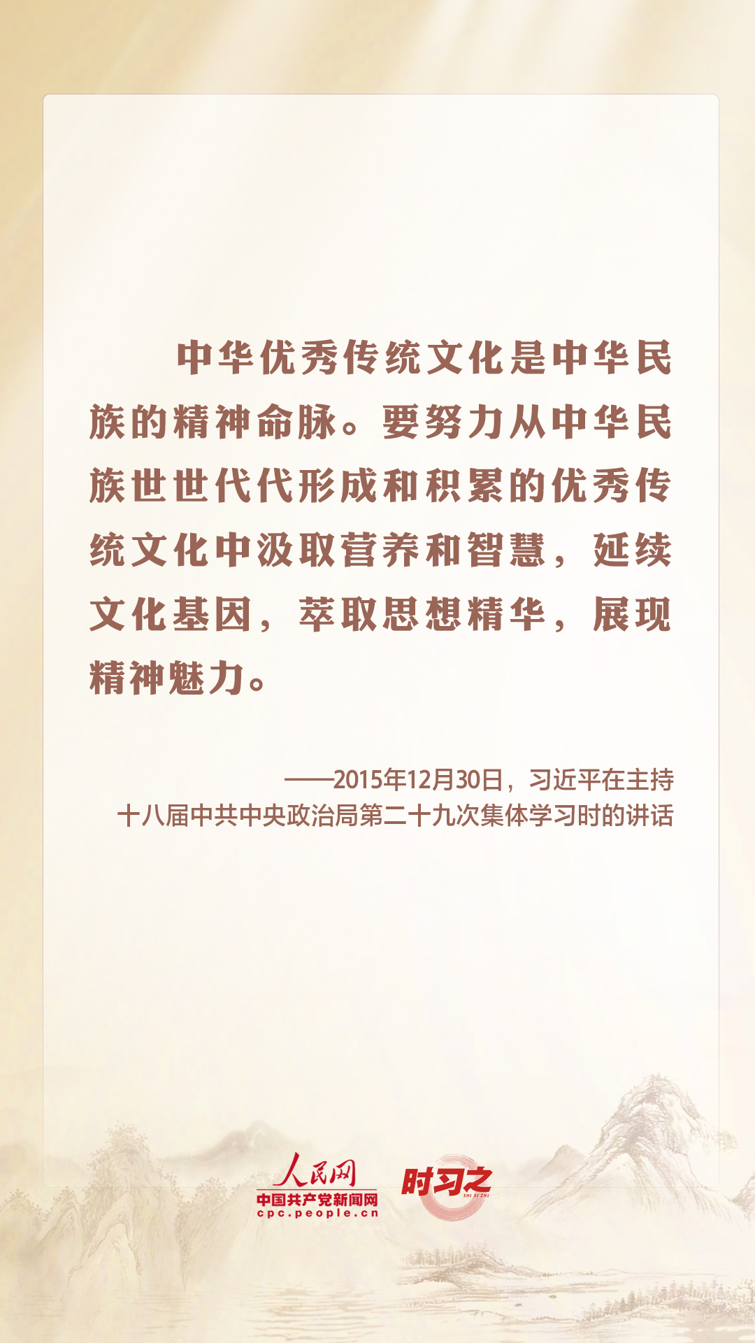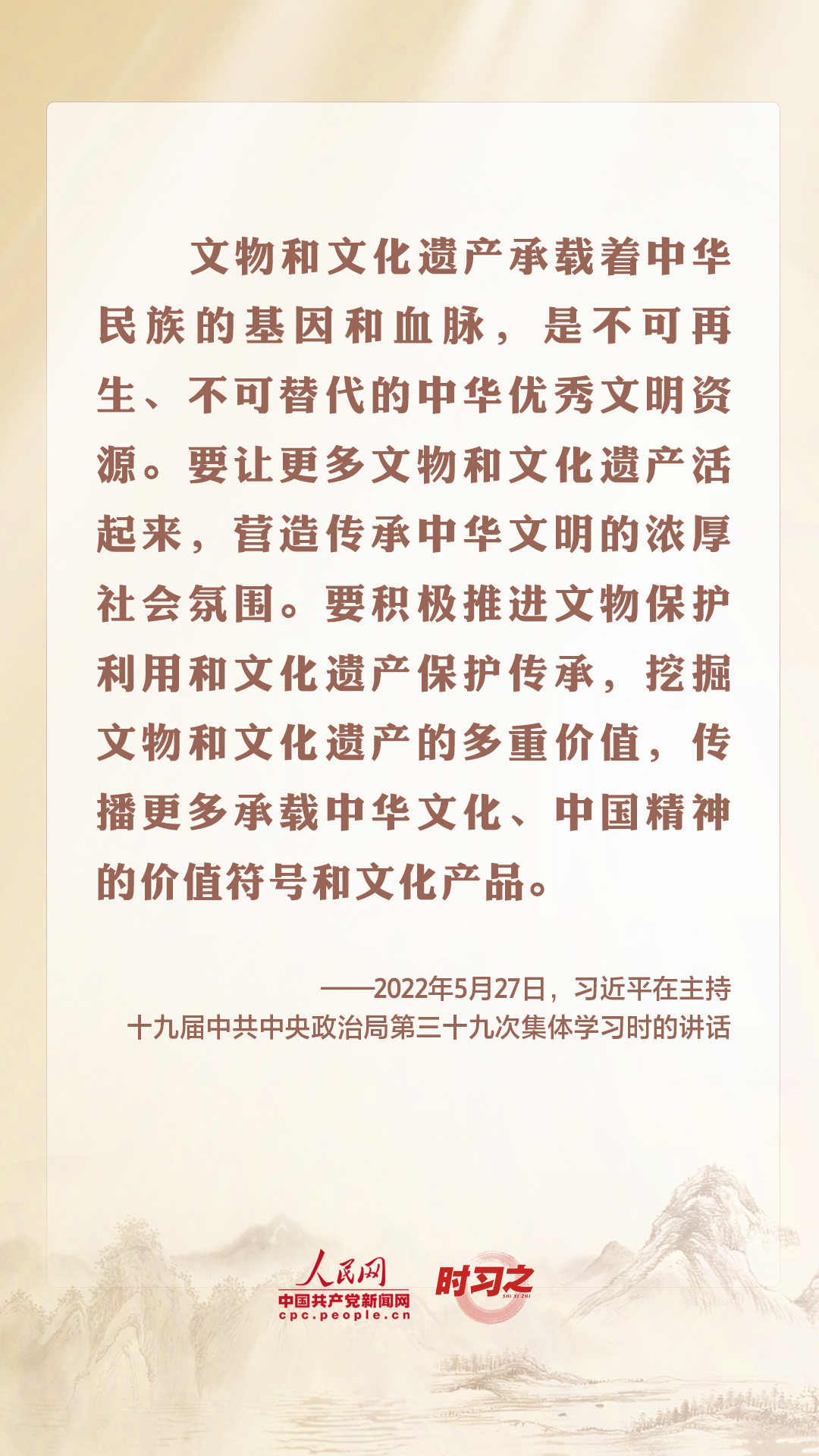 習近平總書記在主持中共中央政治局第三十九次集體學習時強調,“文物和文化遺產承載著中華民族的基因和血脈,是不可再生、不可替代的中華優秀文明資源。”不忘過去才能開辟未來,善于繼承才能更好創新。習近平曾在多個不同場合強調要認真汲取中華優秀傳統文化的思想精華和道德精髓,以時代精神激活中華優秀傳統文化的生命力。