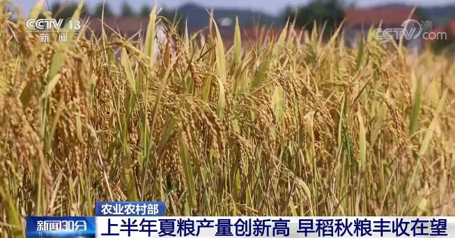 上半年,我國夏糧產量再創歷史新高,達2948億斤,成為經濟社會發展的突出亮點。早稻及秋糧豐收基礎較好。目前,早稻收獲過六成,豐收在望。秋糧面積超過13億畝,長勢總體正常。 “菜籃子”產品供應充足,市場運行總體平穩。
