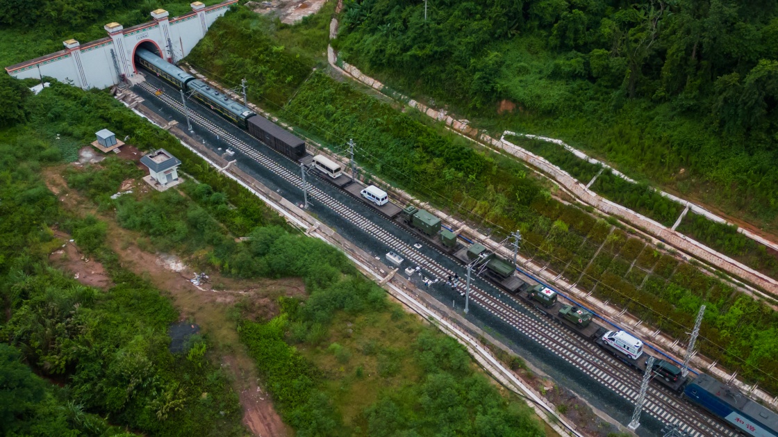 北京時間7月19日晨,我軍赴老撾參加“和平列車-2022”的衛生列車從磨憨站駛出,通過“一隧連兩國”的友誼隧道,進入老撾境內。這是中老鐵路開通以來,我軍首次組織衛生列車跨境鐵路投送。
