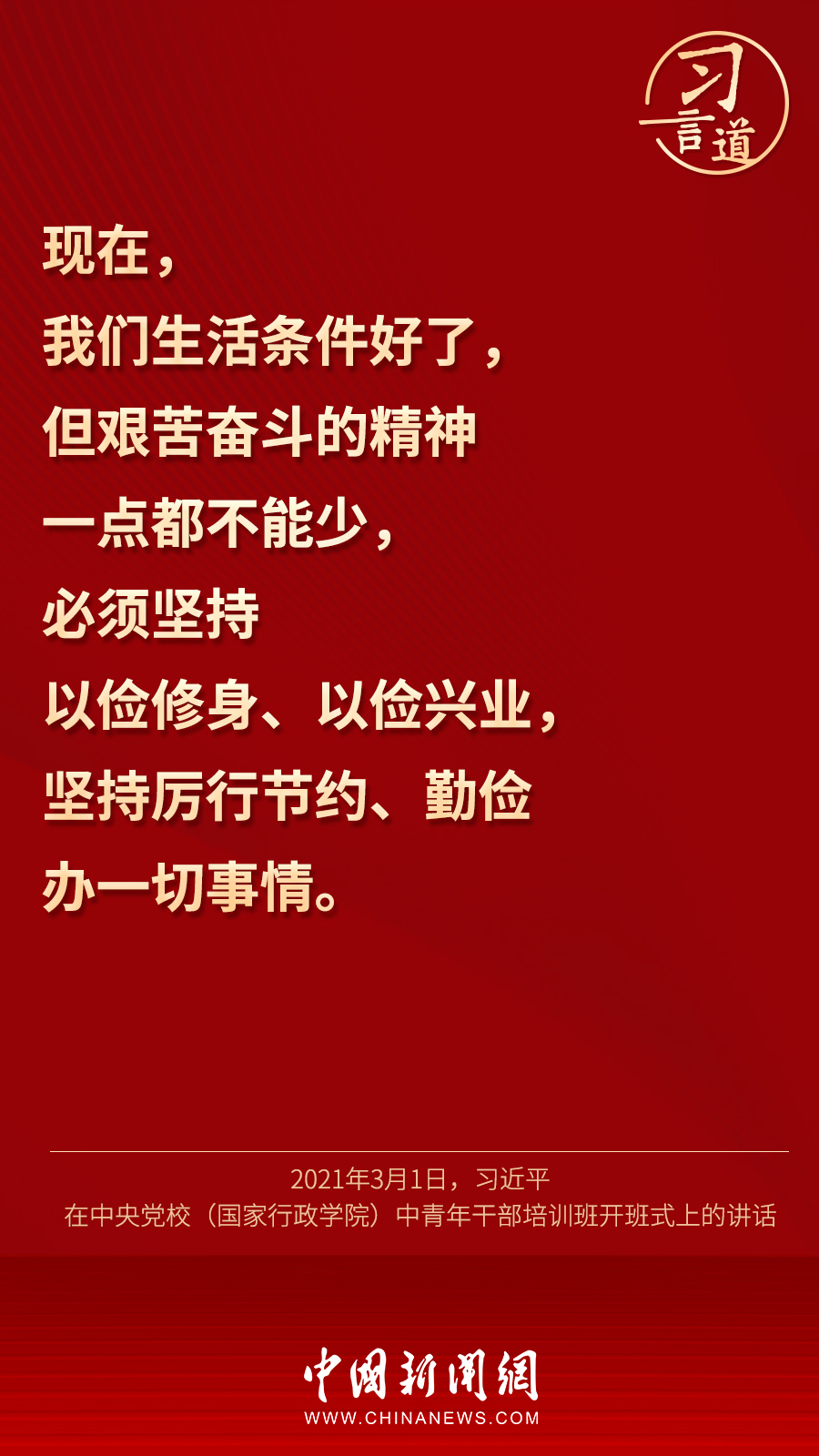 勤儉節約體現了中華民族的價值取向和道德風尚。習近平總書記一直提倡“厲行節約、反對浪費”的社會風尚,多次強調要保持艱苦奮斗、勤儉節約的作風。